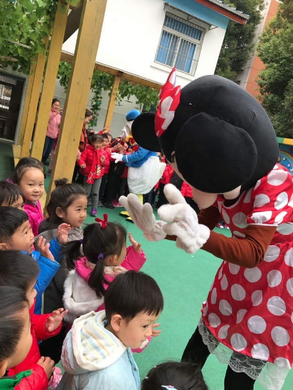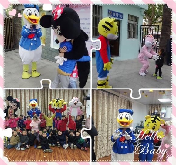 又迎来了沿幼新一届小天使艺术节,在艺术节里宝贝们都会看见有卡通人偶在幼儿园的大门口迎接我们哦!看,卡通人偶们来和我们打招呼啦!