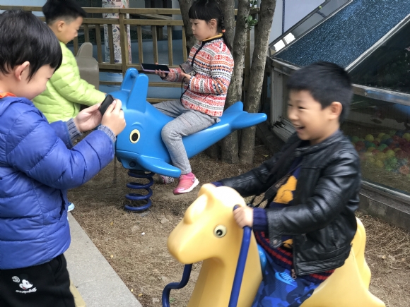 我们在拍空中花园的菜,一个比个专业! 看!我们拍照的姿势。我们在研究着—— 我们还会拍好朋友游戏的照片。杨哲宇笑的开心吧!
