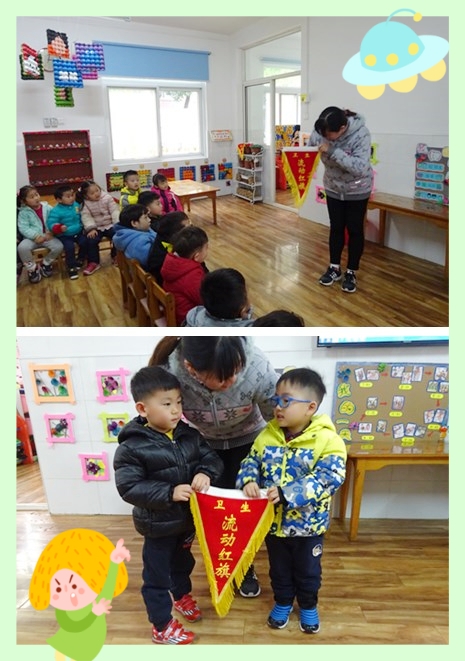 瞧,保健邢老师给我们星星班的宝贝送来了卫生流动红旗。这可证明了我们星星班宝贝在卫生方面做得很好哦,很爱干净!接下来的日子里,我们也要再接再厉哦!感谢邢老师~