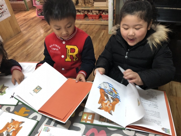 苹果宝贝们快乐的阅读一刻时间到了,让我们和老师、同伴一起来阅读吧!今天,我们一起来读一读绘本故事《我的幸运一天》吧!故事中有小狐狸和小猪,你喜欢谁呢?让我来告诉你,我喜欢小猪,因为这是一只聪明的小猪,因为它遇到危险和困难会动脑筋解决!你呢?