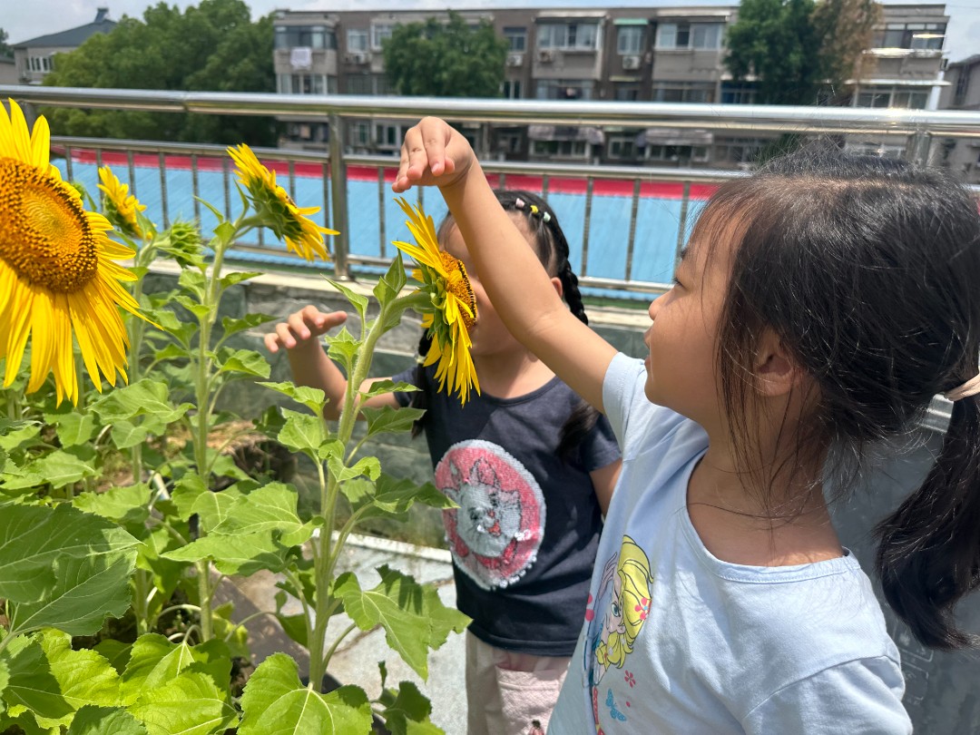 香蕉宝贝在空中花园种植的向日葵开花啦,孩子们兴奋不已,纷纷来到向日葵地,和向日葵留影,还和向日葵比一比谁更高。(撰稿:王平 编辑:顾琴远 审核:张辉)