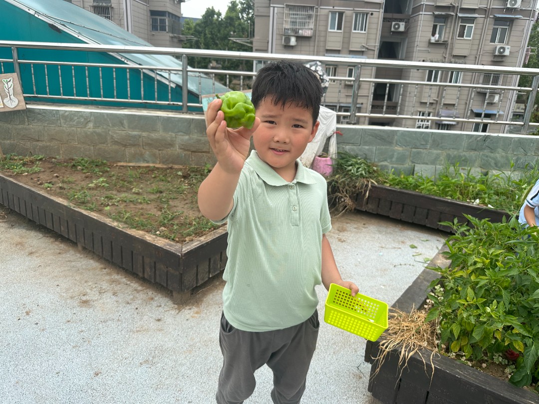 空中花园中的辣椒都成熟了,一个个辣椒挂在枝头上像一个个小灯笼,香蕉宝贝来到种植地,观察着自己的发现,亲手将辣椒进行采摘,感受着收获的喜悦(撰稿:王平 编辑:顾琴远 审核:张辉)